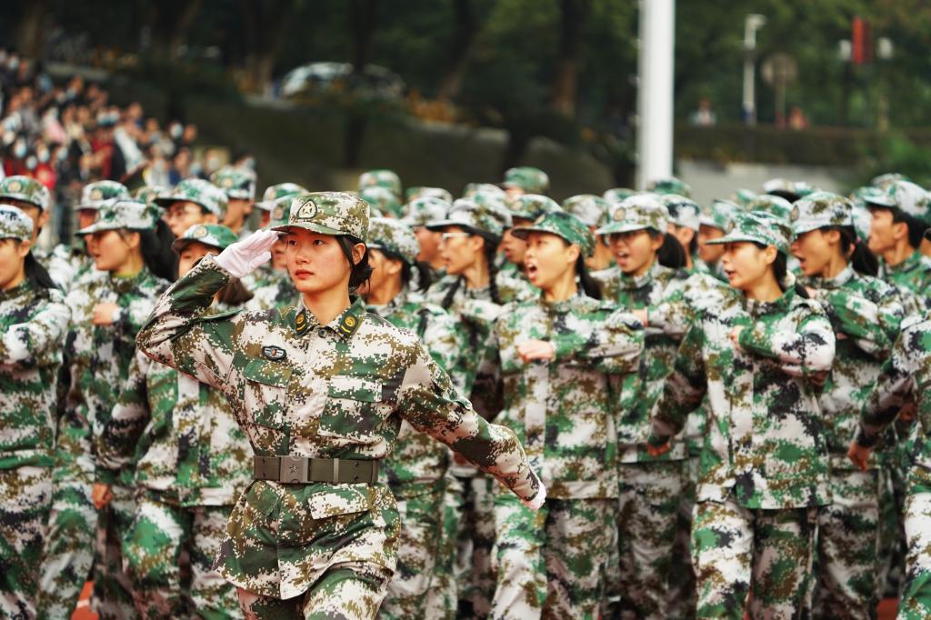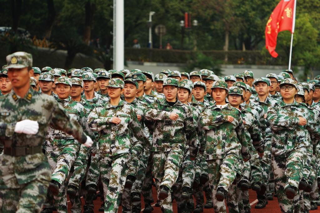 柳和生下达军训汇演开始的指令,军训教官方阵队和16个学院代表方阵队依次通过主席台,接受检阅。他们目光坚毅,步履铿锵,口号嘹亮,现场不时响起雷鸣般的掌声。
