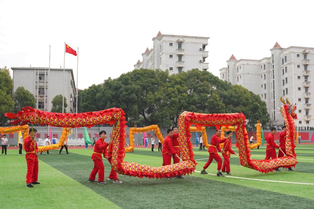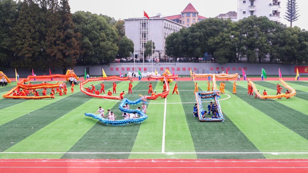 随着欢快的旋律,青春学子带来激情四射的健美操表演,展现华交人铁肩担使命的自信;来自16个学院的16条巨龙腾空而起,龙头高昂,时而跃起、时而盘旋、活灵活现,带来一场精彩绝伦的舞龙表演,彰显华交人铁手创大业的担当;队列整齐的武术表演动作整齐划一,如行云流水般潇洒自如,表达华交人铁心跟党走的决心。