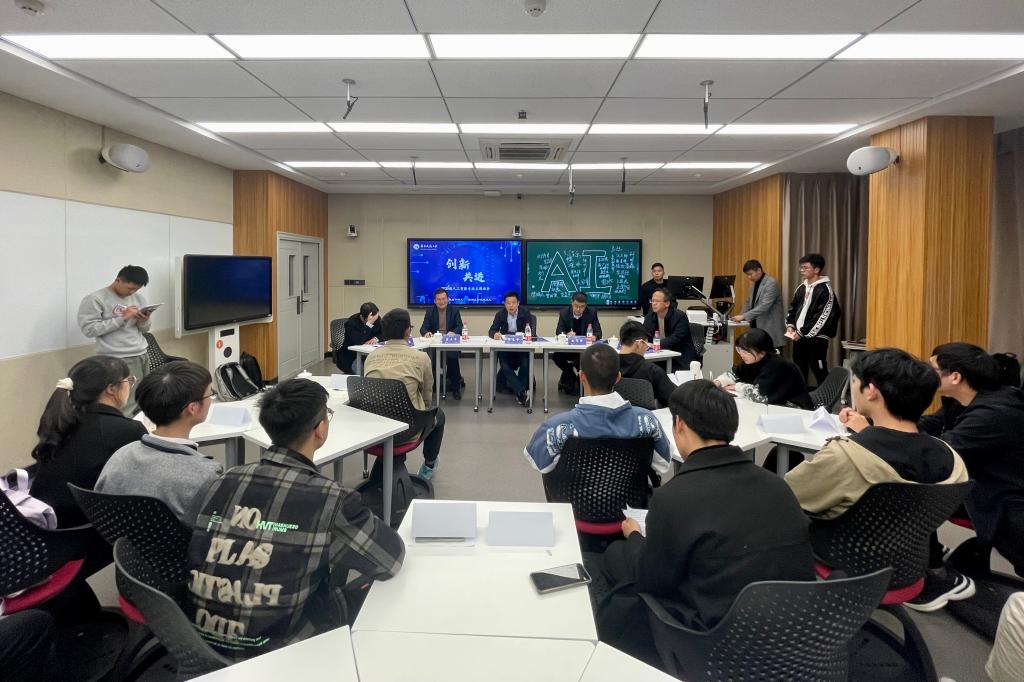 信息学院领导班子成员、2020级人工智能专业全体同学参加班会。(摄/方晨旭、黄晓莹)