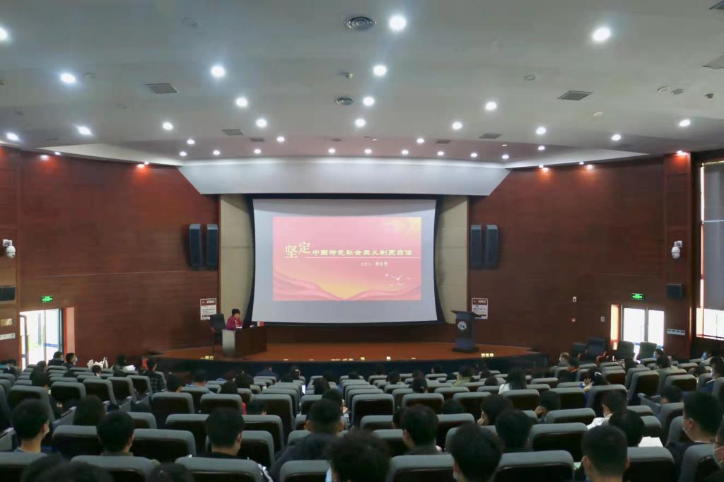 黄小华聚焦“坚定中国特色社会主义制度自信”主题,从中国特色革命道路的艰辛历程;中国特色社会主义制度的初步探索;中国特色社会主义制度的完善发展;中国特色社会主义制度独特优势;坚定中国特色社会主义制度自信,为实现中华民族伟大复兴贡献青春和力量等五个方面进行了解读。她以丰富的史料、翔实的数据为支撑,以历史事件为主线,以代表人物为案例直击理论焦点、解答疑难问题、回应现实关切,深入浅出地阐述了近代以来中国共产党带领中国人民争取民族独立和人民解放、实现国家富强和人民幸福的奋斗史。