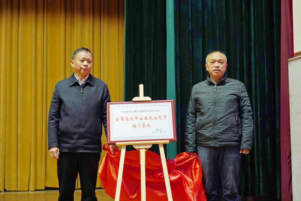 江西省教育厅评估监测研究院院长丁国华,校党委委员、副校长陈梦成共同为WilliamHill中文官方网站“全国高校毕业生就业能力培训基地”揭牌。