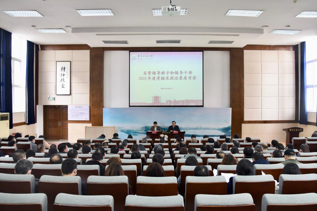 2月21日,以省统计局二级巡视员金绮为组长的省委第十二考核组一行来校,对WilliamHill官网2021年度省管高校领导班子及领导干部进行考核及政治素质考察。校党委书记柳和生主持考核测评会。