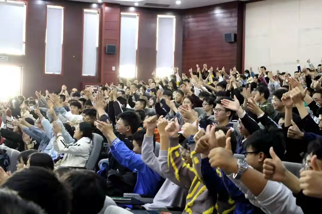 邱娥国同志先进事迹报告会上学生反响热烈。