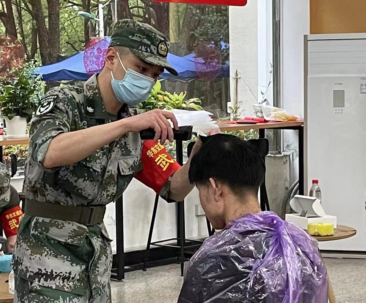 “在部队,理发堪称士兵们的一项基础劳动技能,我们的队伍都是退役士兵,其中很多人都会理发。”问及为何想到公益理发时,学生迷彩青春协会会长、退役大学生士兵先锋队队长付雪洋告诉记者,“我们发现身边很多男同学的头发都有点长了,而校园内的理发店都关门了,就想面向全校举办一个公益理发活动。”