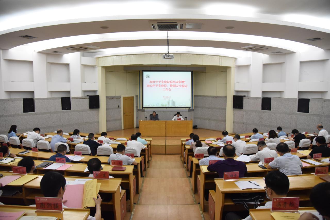 会议宣读《关于表彰2021年度平安建设先进单位的决定》《关于表彰2021年度平安建设先进个人的决定》,并为“平安单位”“平安建设先进单位”颁发奖牌。校属各单位党政主要负责人参加会议。(陈君 摄)