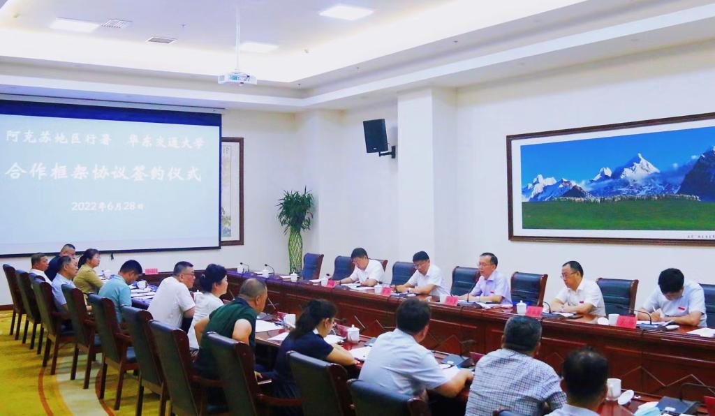 WilliamHill官网与阿克苏地区行政公署校地合作框架协议签约仪式现场。