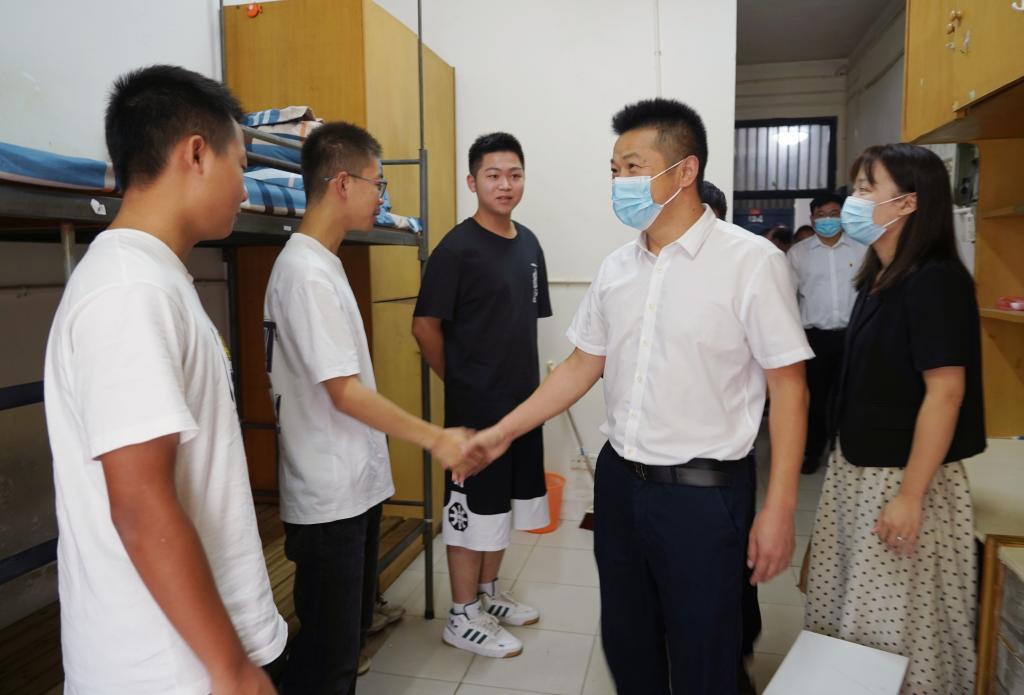 徐长节还仔细检查了新生的生活设施,叮嘱职能部门负责同志,要进一步提升管理服务意识、提高管理服务水平,为学生提供舒适的住宿环境。他指出,各单位要主动贴近学生、关心关爱学生,畅通意见建议反馈渠道,及时解决学生的合理诉求,帮助同学们尽快适应在华交的生活,全身心投入到学业和成长中。