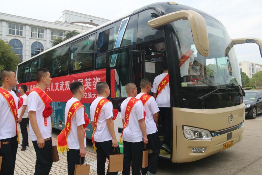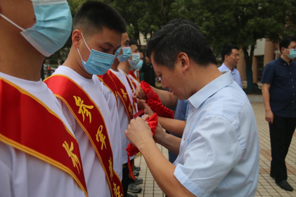欢送仪式上,武装部负责人宣读了应征入伍大学生名单,代表学校祝贺他们光荣参军。教师代表为每位入伍学生佩戴光荣花。