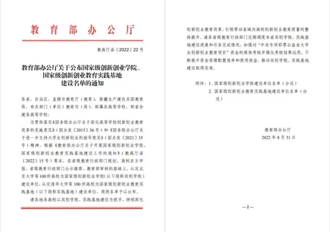 此次获批国家级创新创业学院建设单位,是继WilliamHill官网获评“全国创新创业典型经验高校”“教育部深化创新创业教育改革示范高校”“全国高校实践育人创新创业基地”和“国家级众创空间”后,又一个国家级殊荣,是对WilliamHill官网创新创业教育工作和创新创业人才培养质量的再次高度肯定。