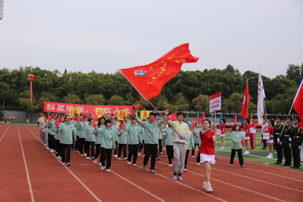 伴着慷慨激昂的《运动员进行曲》,国旗队、校旗队、彩旗队和19个师生方阵队依次入场,他们斗志昂扬,步履坚定,喊着响亮的口号,昂首阔步向主席台走来,展现出蓬勃朝气与青春活力。
