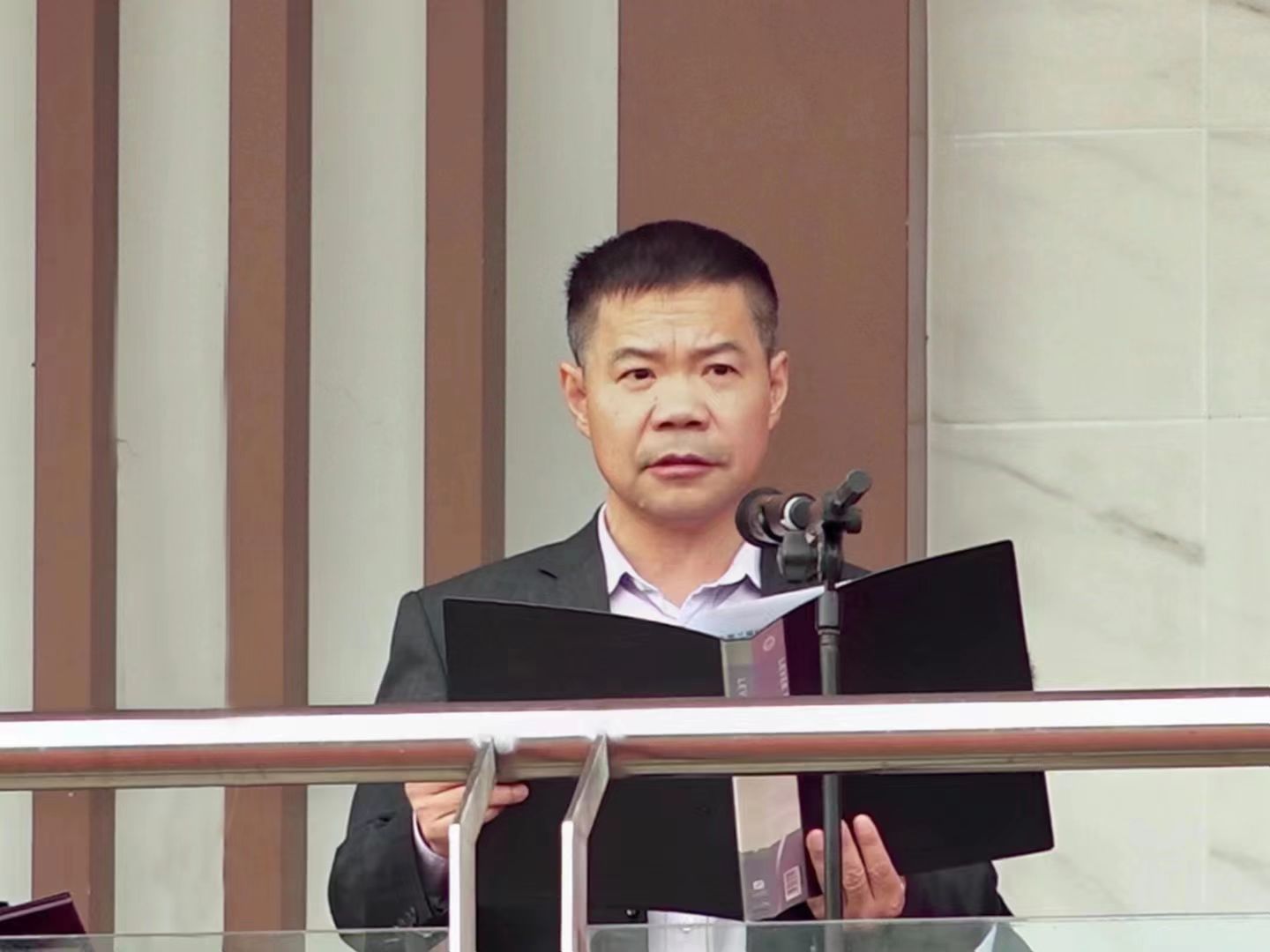 在庄严肃穆的国歌旋律中,五星红旗冉冉升起,全场师生行注目礼,齐唱国歌。