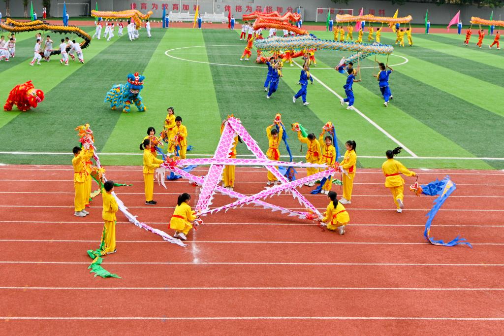 开场舞《瞬间的永恒》青春洋溢、活力四射;退役士兵先锋队的匕首操表演动作干净利落,行如流水;铿锵有力的锣鼓声响起,《龙腾狮跃》气势磅礴,恢宏壮观,一条条彩色长龙翻腾起舞,狮子随着鼓点的快、慢、轻、重,或匍伏、或回旋、或飞跃,妙趣横生;舞态优美的团体舞《领航》舞出了青春力量,展示了华交学子永远听党话、铁心跟党走的坚定决心;太极扇一开一合,气一扬一顿,一招一式,刚柔相济,一张一弛,尽显飘逸,展现出武术文化之自信。据悉,本次田径项目比赛为期3天,共有821名运动员参赛,其中学生代表713人,教职工代表99人;比赛项目共有30项,其中男子组15项、女子组15、教工组1项。
