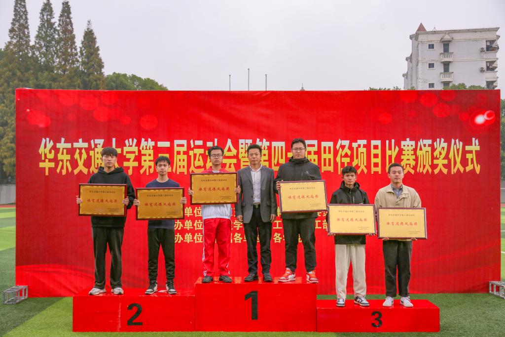 经过3天紧张激烈角逐,电气学院摘得桂冠,交通学院、机电学院、经管学院、土建学院、研究生、信息学院、软件学院分别位列运动会团体总分第二至第八名。 土建学院代表队获教工团体第一名,机关代表队获第二名,机电学院与理学院代表队并列第三名。电气学院获体育道德风尚奖第一名,交通学院、土建学院、经管学院、机电学院、艺术学院分别位列第二至六名。电气学院获得田径项目团体总分第一名,交通学院获第二名、机电学院、经管学院并列第三。电气学院、宣传部、团委获体育事业突出贡献奖。