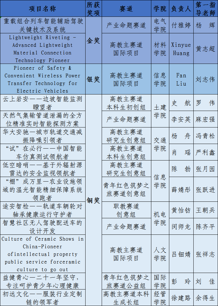 大赛启动以来,学校领导高度重视,创新创业学院精心组织,相关职能部门、学院和校内外指导老师密切配合、悉心培育,全程参与项目指导和参赛路演,为参赛团队的水平提升提供了坚强保证。全体参赛师生上下一心、砥砺前行,全面展现了华交学子敢闯会创、奋发有为的精神风貌。