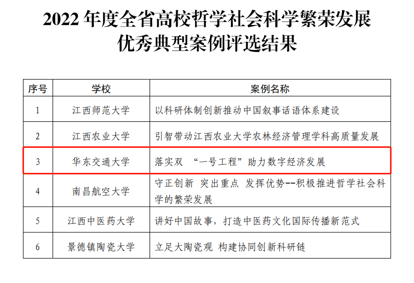 近日,江西省教育厅公布了2022年度全省高校哲学社会科学繁荣发展优秀典型案例,WilliamHill官网经管学院欧阳志刚、周才云教授撰写的《落实双“一号工程”助力数字经济发展》案例成功入选(全省共6项)。
