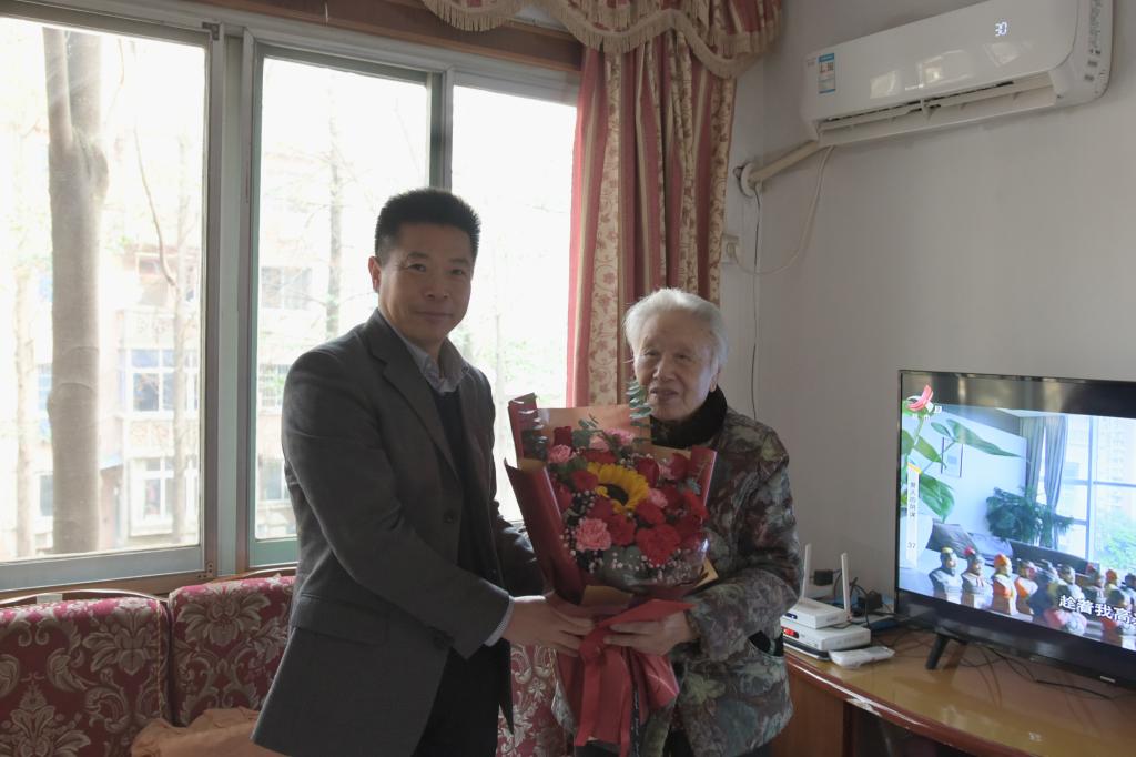 校党委书记柳和生走访慰问离退休老同志欧阳名丁以及校友卢秀珍。