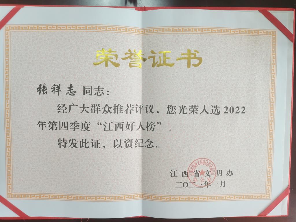 2019年抗击新冠肺炎疫情期间,张祥志老师组建了一支由6名党员教师组成的线上服务团,为超过200家企业纾困解难;2022年抗击南昌“倒春寒”疫情期间,他第一时间报名参加“教工党员先锋队”和“青年突击队”,完成20余轮核酸检测、保卫执勤等志愿服务,还通过线上讲授《知识产权发展态势与企业应对》课程,为400余家企业提供咨询,讲授的《文化创新的版权之维》约10.36万人观看,得到来自南昌市、赣州市、九江市、赣江新区、抚州市5个地市的来信表扬。