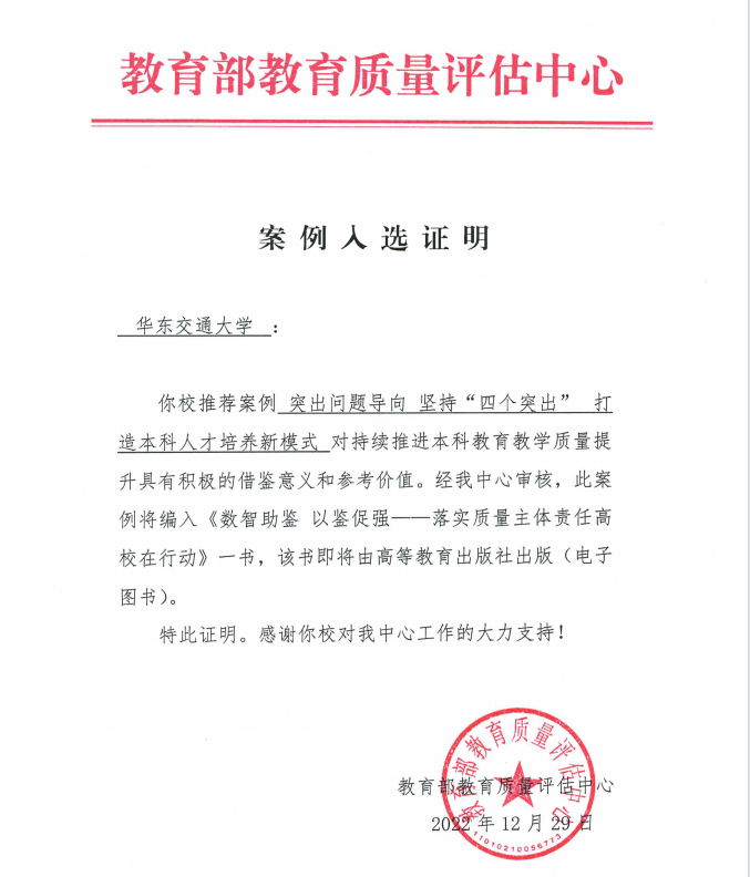 近日,教育部教育质量评估中心公布了全国普通高校本科教育教学质量报告应用案例评选结果,WilliamHill官网天佑学院报送的《突出问题导向 坚持“四个突出” 打造本科人才培养新模式》成功入选。