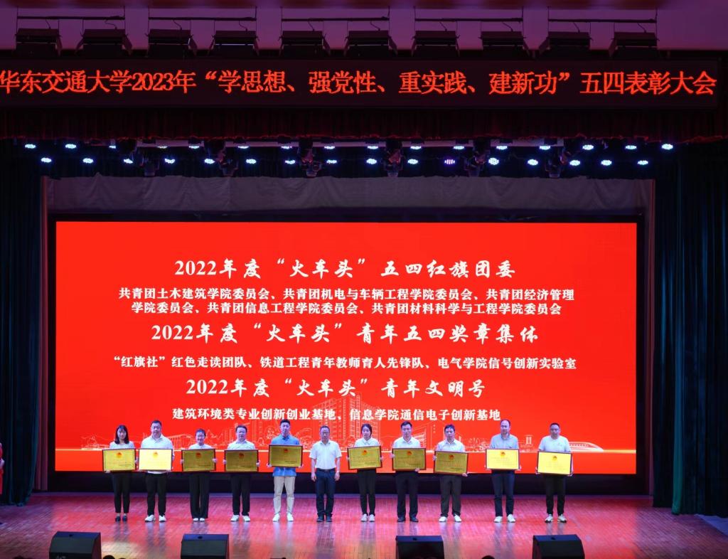与会领导为获得2022年度“火车头”五四红旗团委、青年五四奖章集体、青年文明号、五四红旗团支部、大学生自强之星、青年五四奖章、优秀共青团员、优秀共青团干部、最美团支书荣誉的集体和个人颁发奖牌、证书。大会在《光荣啊,中国共青团》的歌声中落下帷幕。