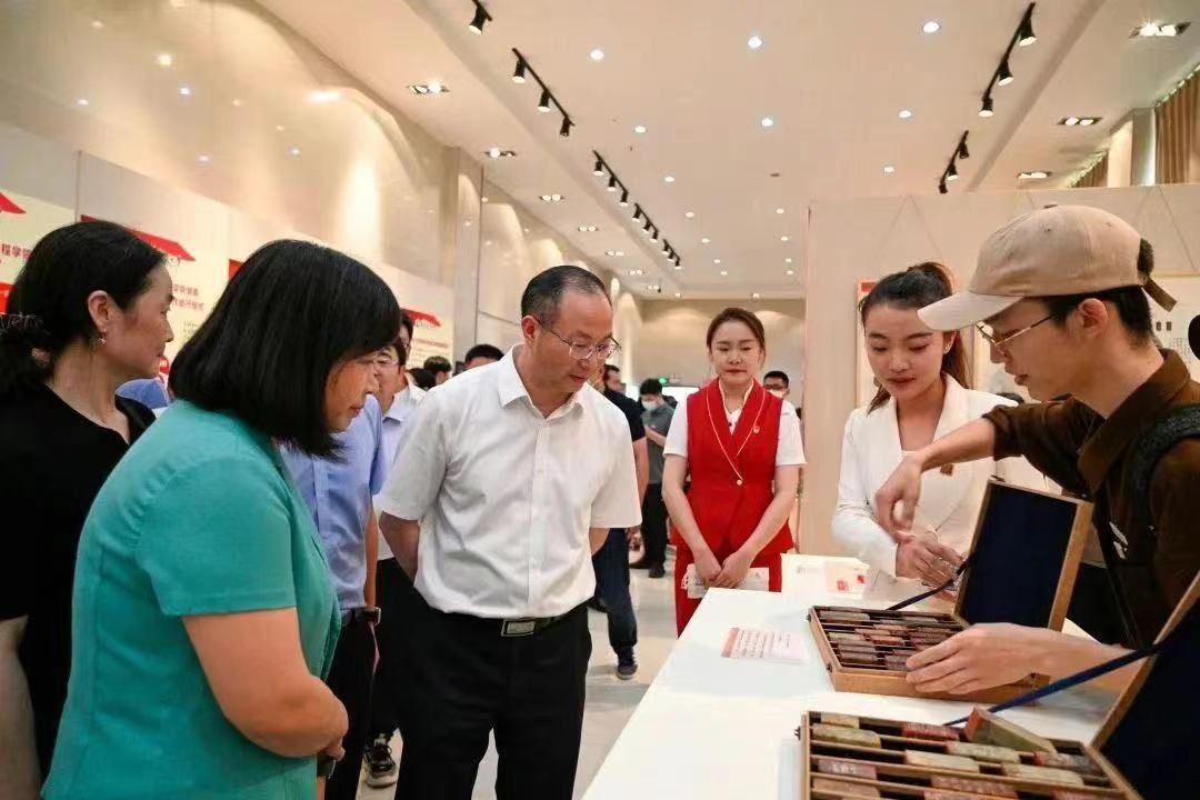 省委教育工委书记、省教育厅厅长吴永明参观红色走读优秀作品展。