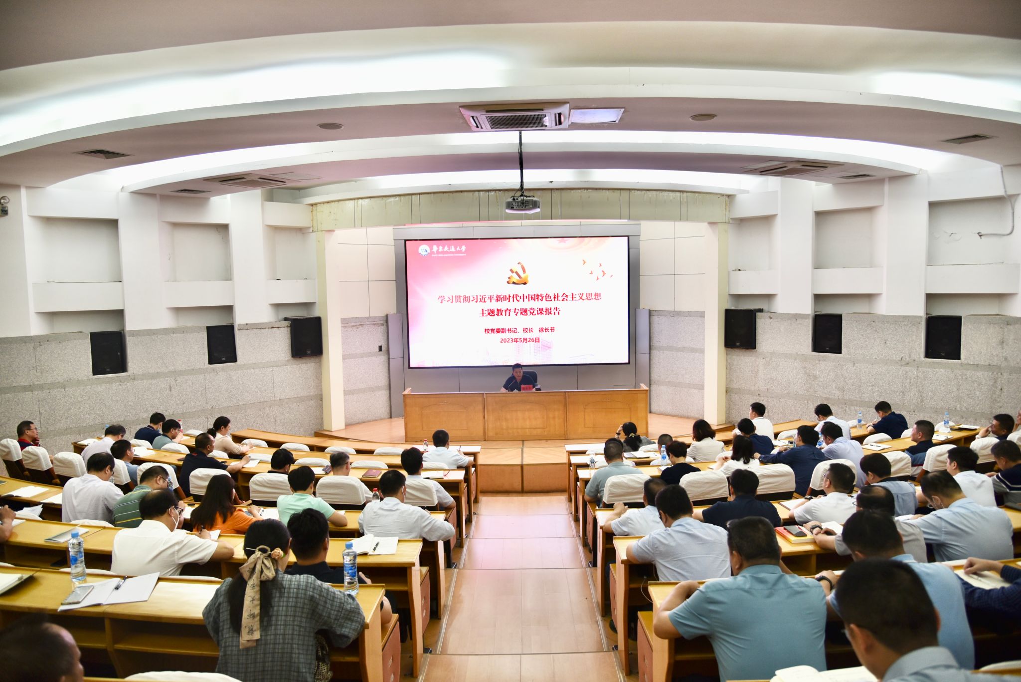 5月26日,校党委副书记、校长徐长节为“火车头”处级干部读书班作主题教育专题党课报告。