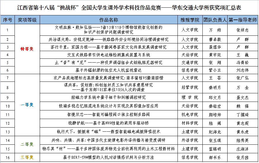 “挑战杯”大学生课外学术科技作品竞赛是由共青团中央、中国科协、教育部、全国学联和地方政府共同主办的一项具有导向性、示范性和群众性的全国竞赛活动。竞赛自1989年举办以来,始终坚持“崇尚科学、追求真知、勤奋学习、锐意创新、迎接挑战”的宗旨,在促进青年创新人才成长、深化高校素质教育、推动经济社会发展等方面发挥了积极作用,在全国高校产生了广泛而良好的影响,被誉为当代大学生科技创新的“奥林匹克”盛会。据悉,第十八届“挑战杯”江西省大学生课外学术科技作品竞赛自启动以来,全省共有106所高校、10万余名师生、近万件作品参赛,574件作品进入省赛,经过评审委员会的前期初审、复评,204件作品闯入终审决赛。