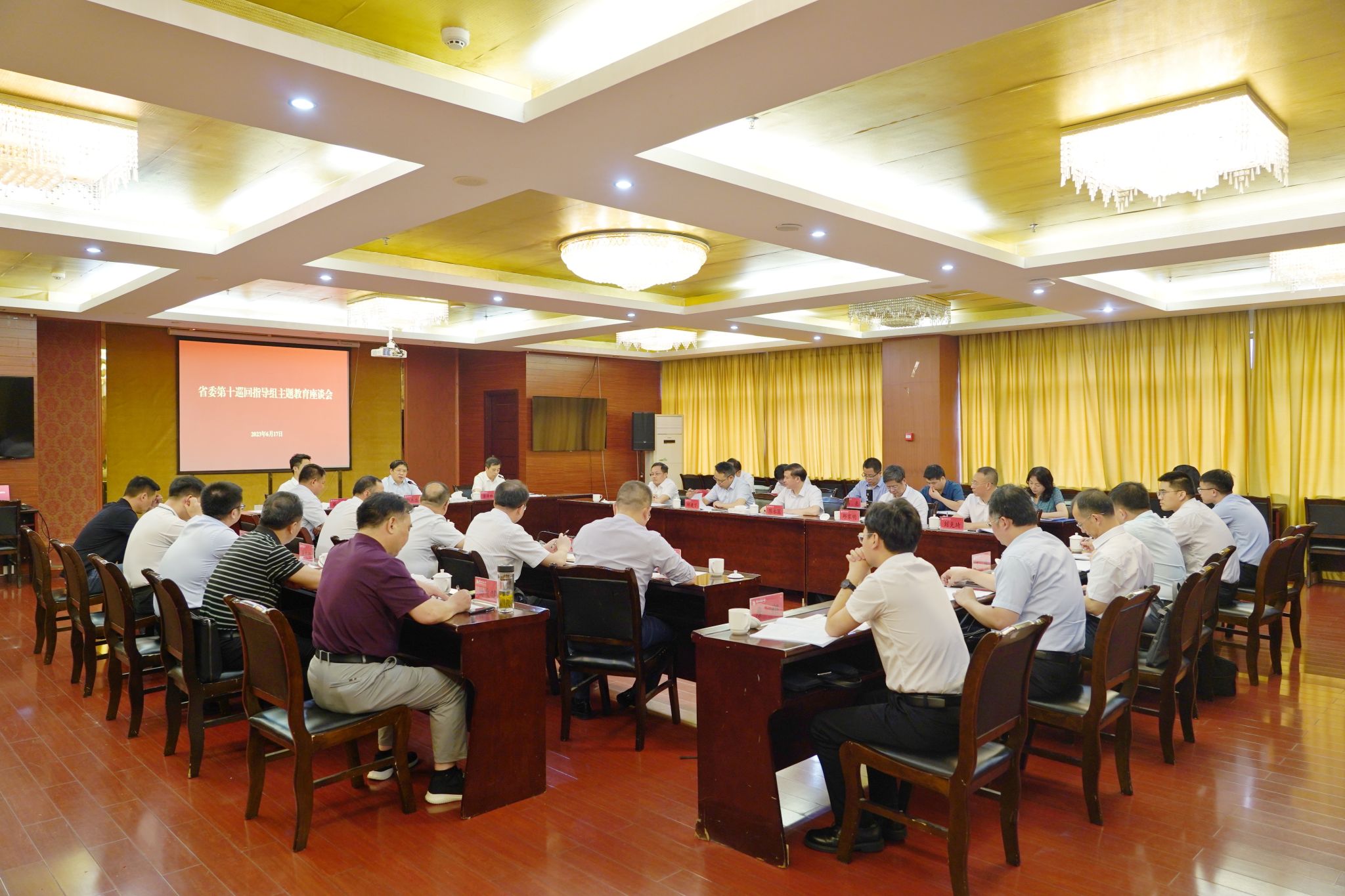6月17日,省委第十巡回指导组在WilliamHill中文官方网站召开主题教育座谈会。指导组组长郭杰忠出席会议并讲话,省委主题教育领导小组办公室联络组代表毕潇伟,省委第十巡回指导组全体组员,10所学校分管领导、主题办负责同志参加会议。指导组副组长潘泽林主持会议。