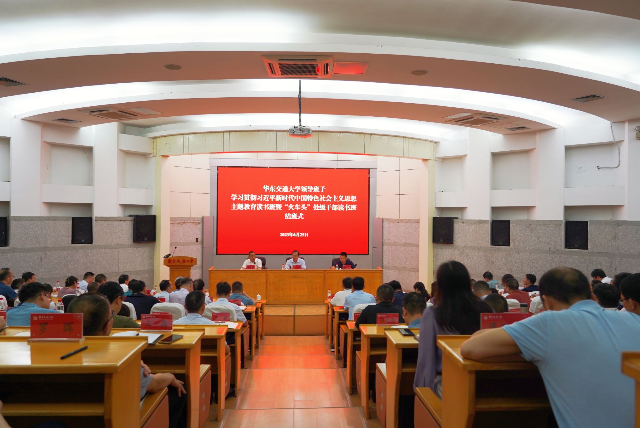 全体处级干部,学校主题教育领导小组办公室全体成员参加结班式。(饶家宁 摄)
