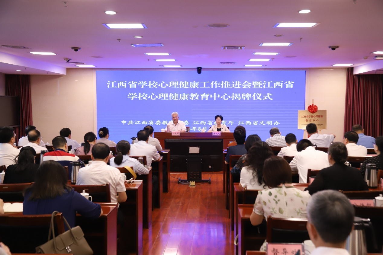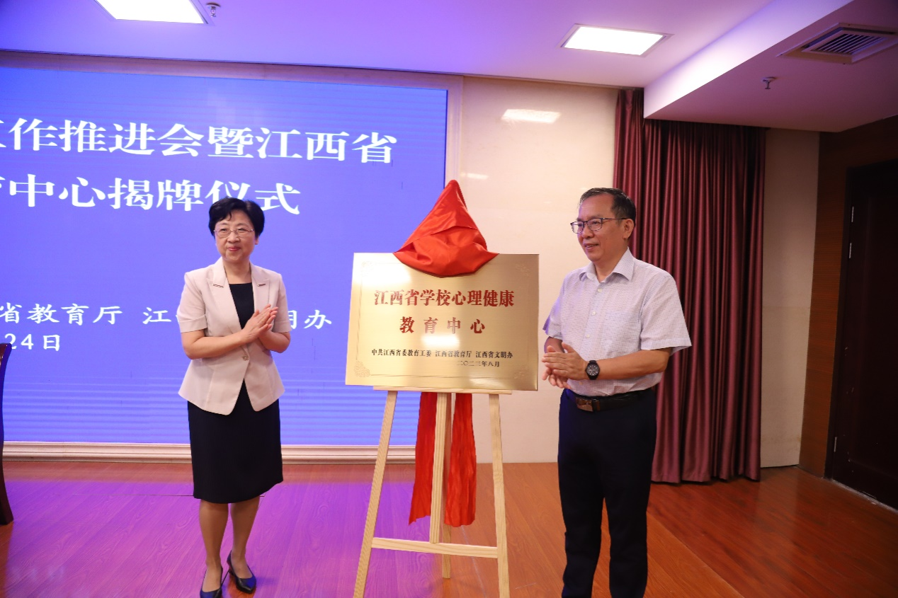 省委教育工委、省教育厅、省文明办在南昌举行江西省学校心理健康工作推进会暨江西省学校心理健康教育中心揭牌仪式。