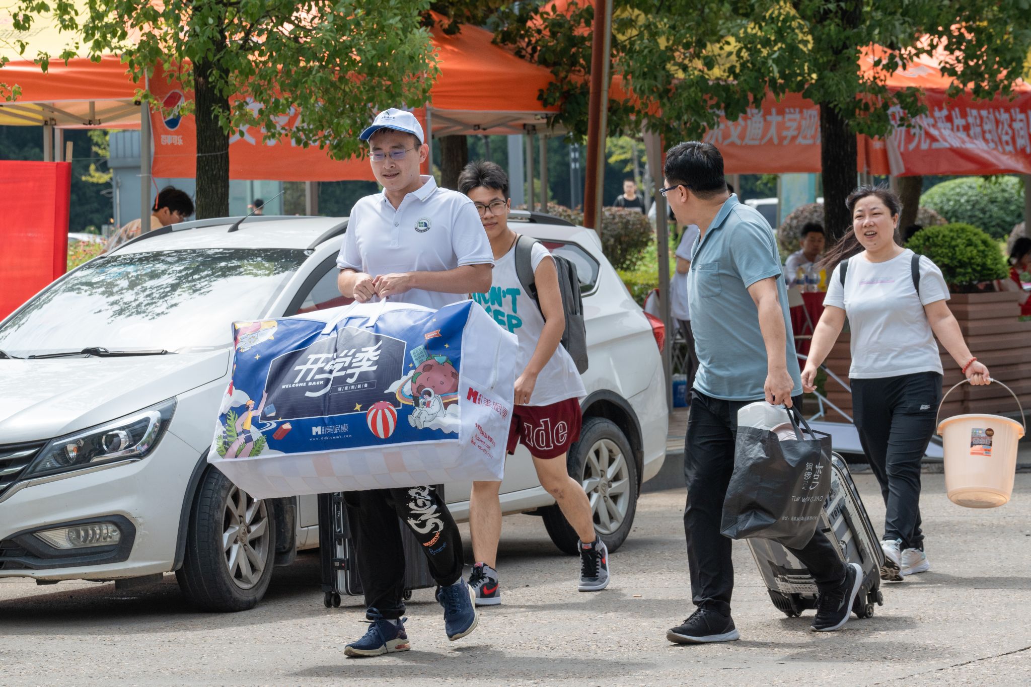 葱茏森郁的校园,各处都能看见忙碌奔走的志愿者和真挚热情的迎新标语。志愿者们精神饱满,各司其职,协作配合,帮助新生顺利完成入学登记、宿舍入住、学费缴纳等环节,迎新现场秩序井然,各环节衔接紧凑。除此之外,火车站和机场还设有华交专属大巴直达校园,校内设有专人值守的志愿服务站,进入学校后,还有“创意扭蛋机”“期待签到墙”“合影打卡点”等小惊喜等待大家……细致有趣的迎新安排和饱满热情的志愿服务让五湖四海远道而来的学子们感受到了家一般的温暖。