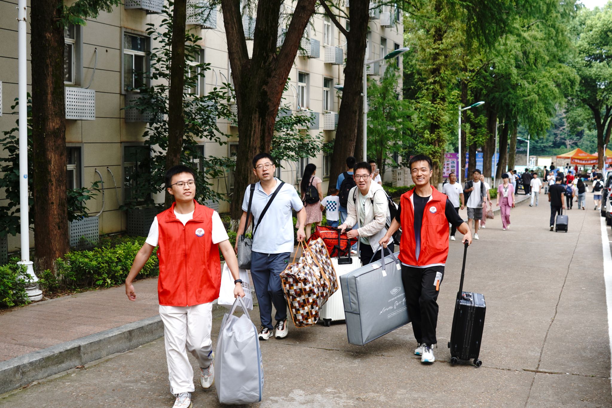 安博、岑宇峰两位新生在报到当天迎来了他们的18岁生日,学校为他们精心准备了生日蛋糕,勉励他们为实现自己的理想而努力奋斗;“杨勇烈士之子”杨国睿带着录取通知书和对大学的期待,从贵州遵义来到江西南昌,与华交共赴铁路之约;杨名宇是一名铁四代,他的外曾祖父、外祖父、父亲等都是铁路人,他希望毕业后能为中国铁路事业发展作出更大的贡献。在研究生迎新点,获评2023年度全省“最美大学生”的万琪伟,用日复一日的努力和汗水浇灌出梦想之花,完成了从硕士研究生到博士研究生的“华丽转身”。人文学院“渐冻症”少年叶懂之,在父母的陪同下住进了学校为他准备的“爱心宿舍”,立志做一名维护公平正义的大律师。在大家的声声祝福中,他们开启人生新阶段。