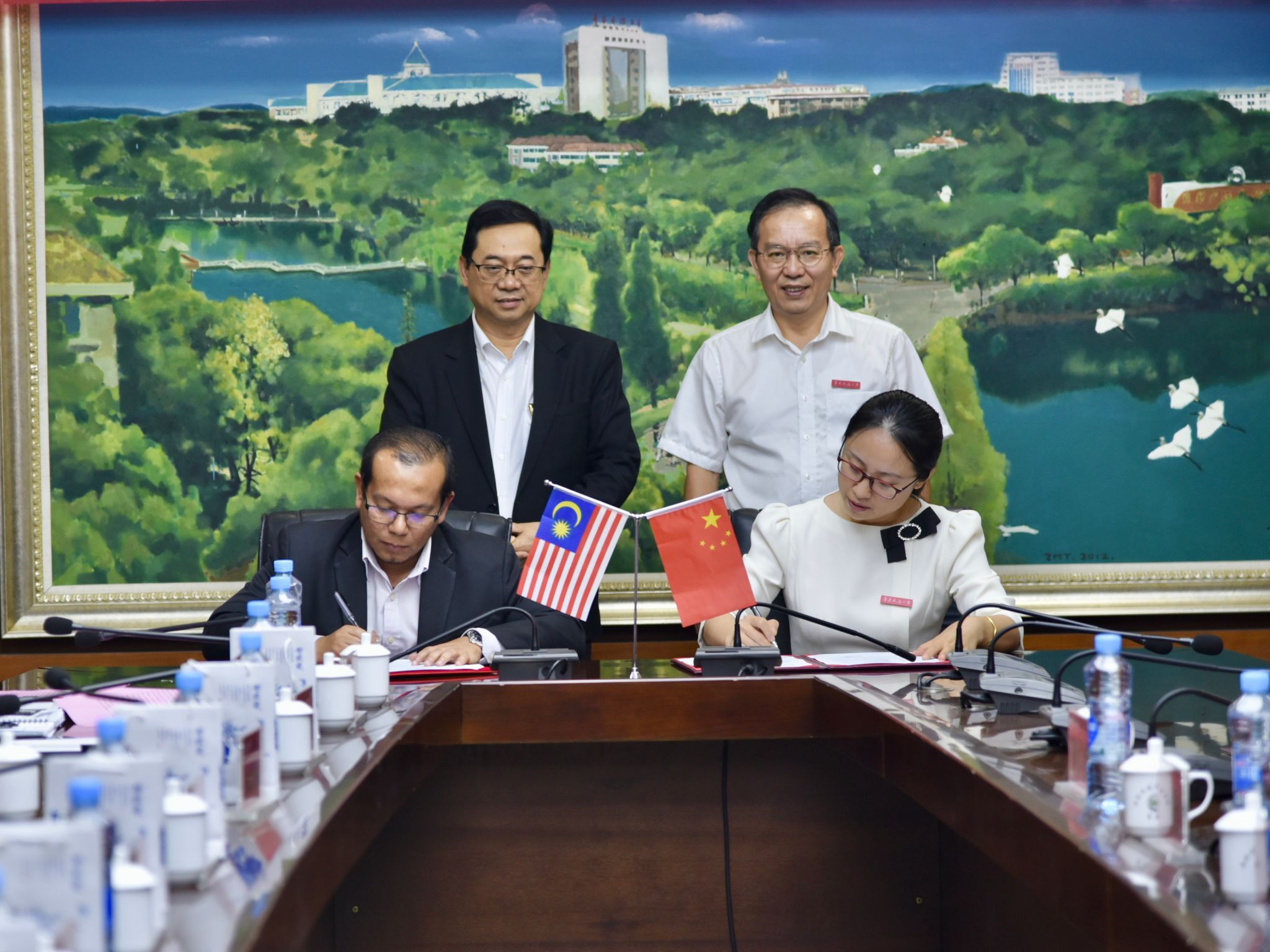 罗文俊、Mohd代表双方签署校际合作协议。