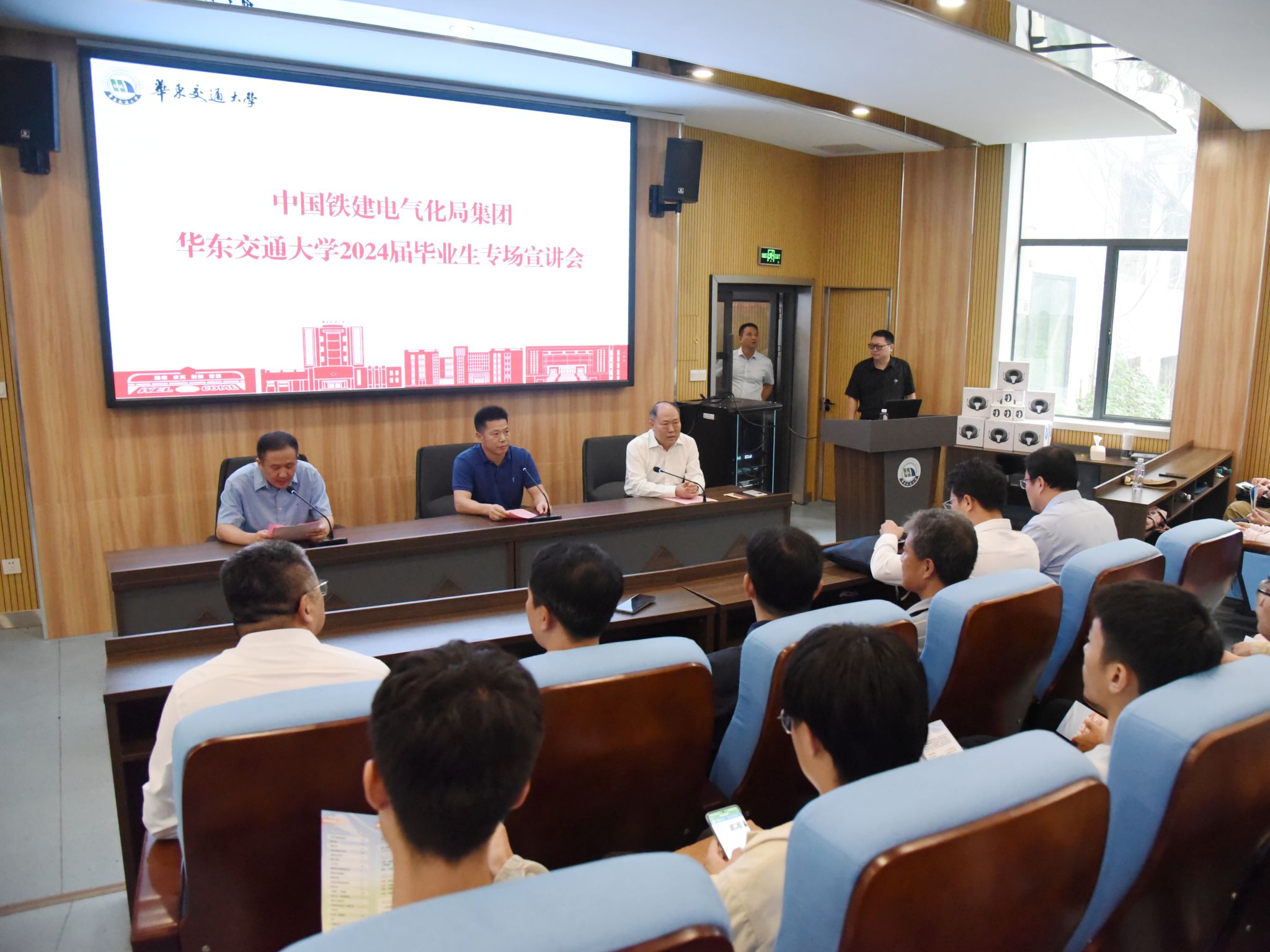 9月14日,中国铁建电气化局集团有限公司总经理、党委副书记程庆海率队来校举办2024届毕业生专场宣讲会。校党委书记柳和生会见了程庆海一行。校党委副书记、校长徐长节出席宣讲会。
