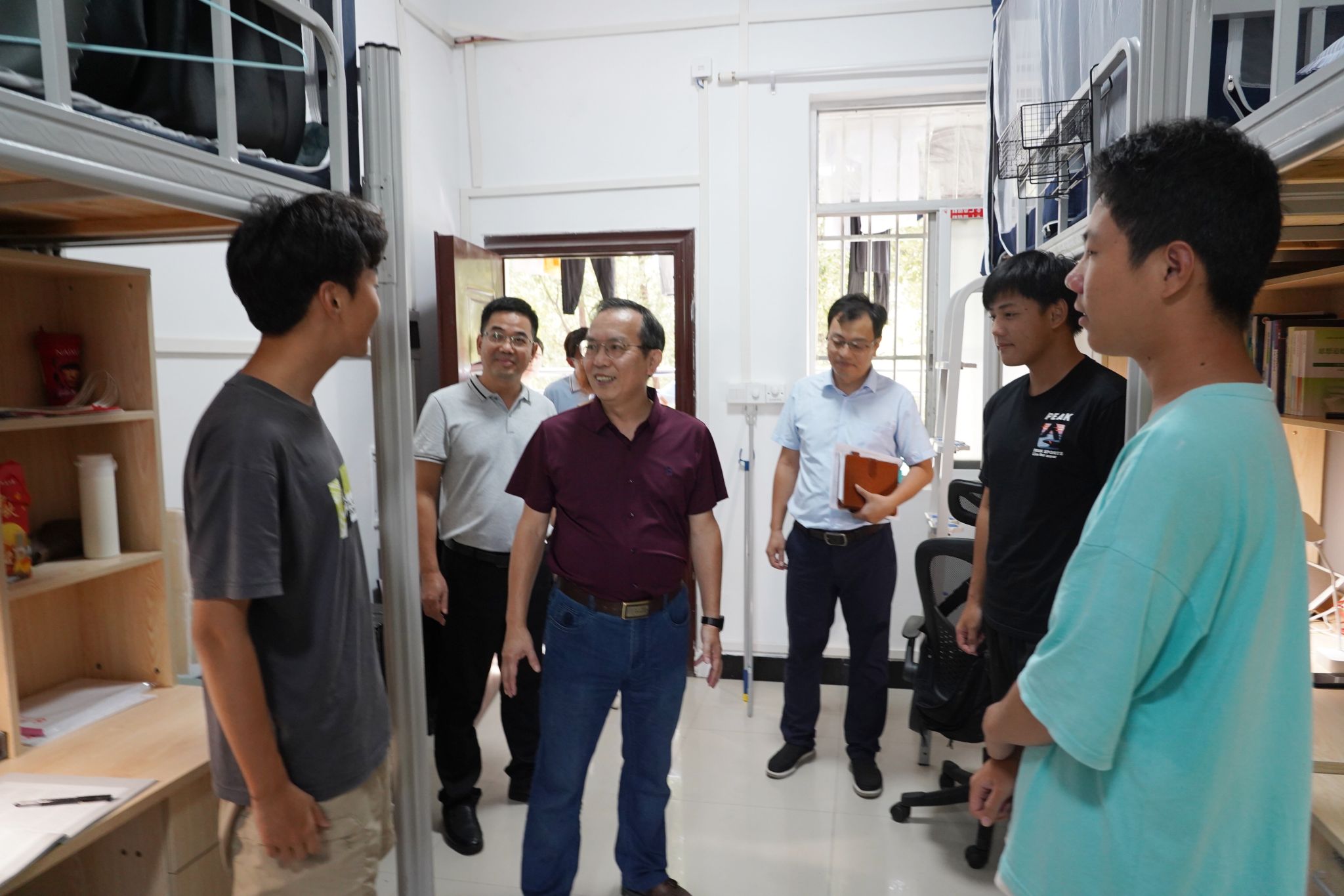 在学生宿舍,柳和生与学生亲切交流,叮嘱学生假期要注意出行安全。他强调,相关职能部门要做好服务保障工作,为留校学生的学习、科研、生活等提供便利条件,确保度过一个平安、快乐的假期。(马莉娅 摄)