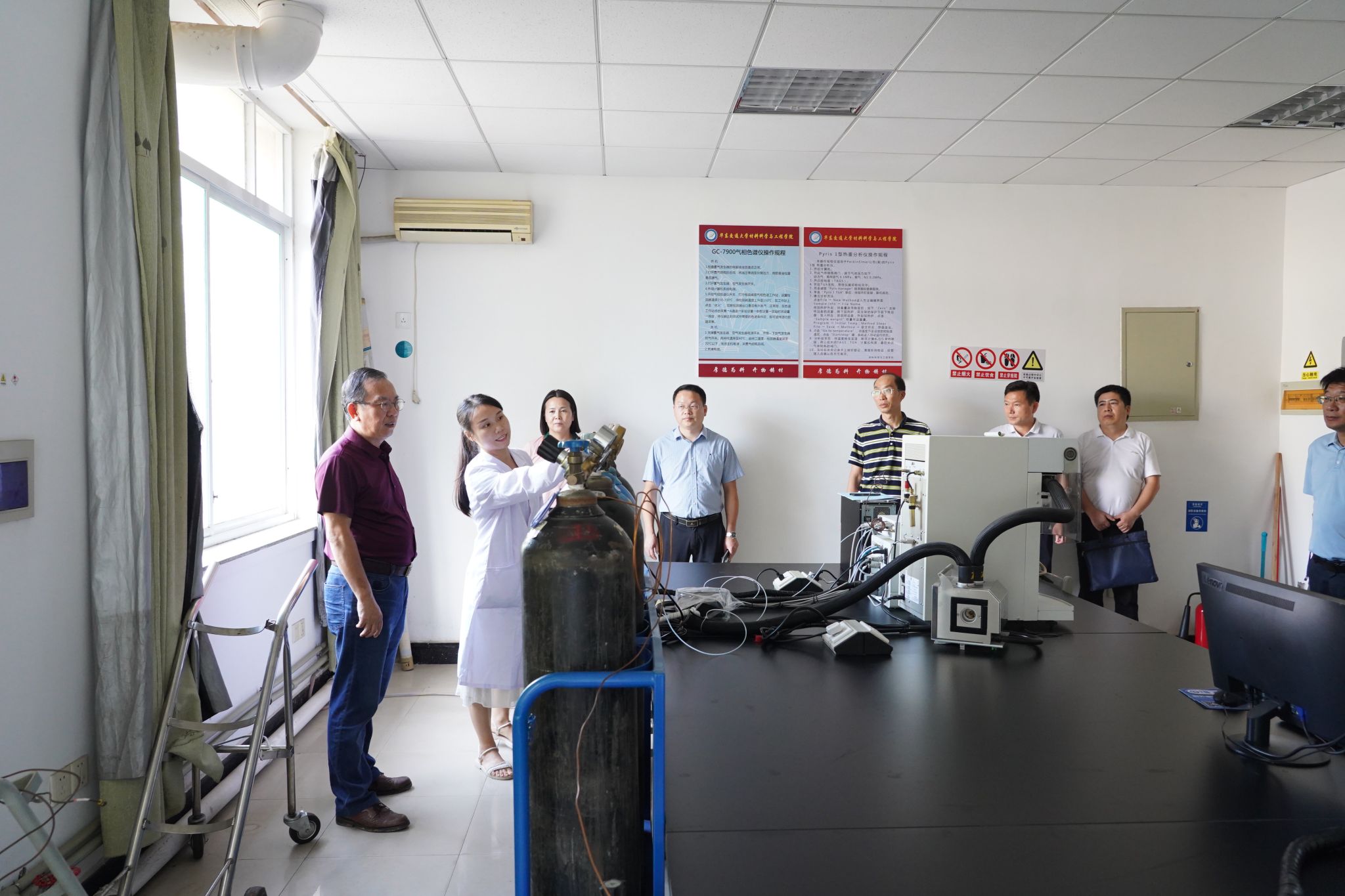 在材料学院实验室,柳和生对实验室安全管理制度落实、仪器设备规范使用、消防安全等情况进行了详细检查,强调要高度重视危险化学品管理,从严落实责任,狠抓隐患排查,确保实验室安全。