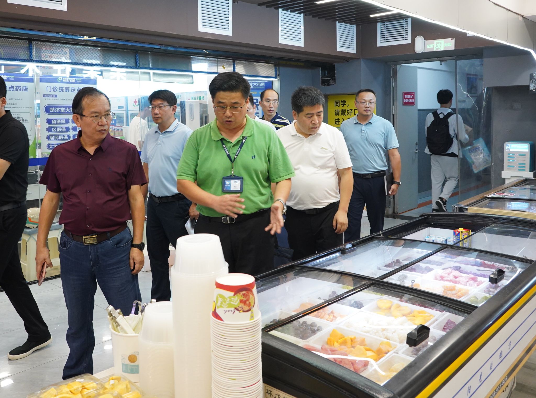 在学校购物中心,柳和生仔细查看了室内消防设施和杂物堆放情况,强调各经营商铺要定期检查用水、用电情况,保持环境整洁,对于过期的食品要及时销毁,切实保障食品安全。