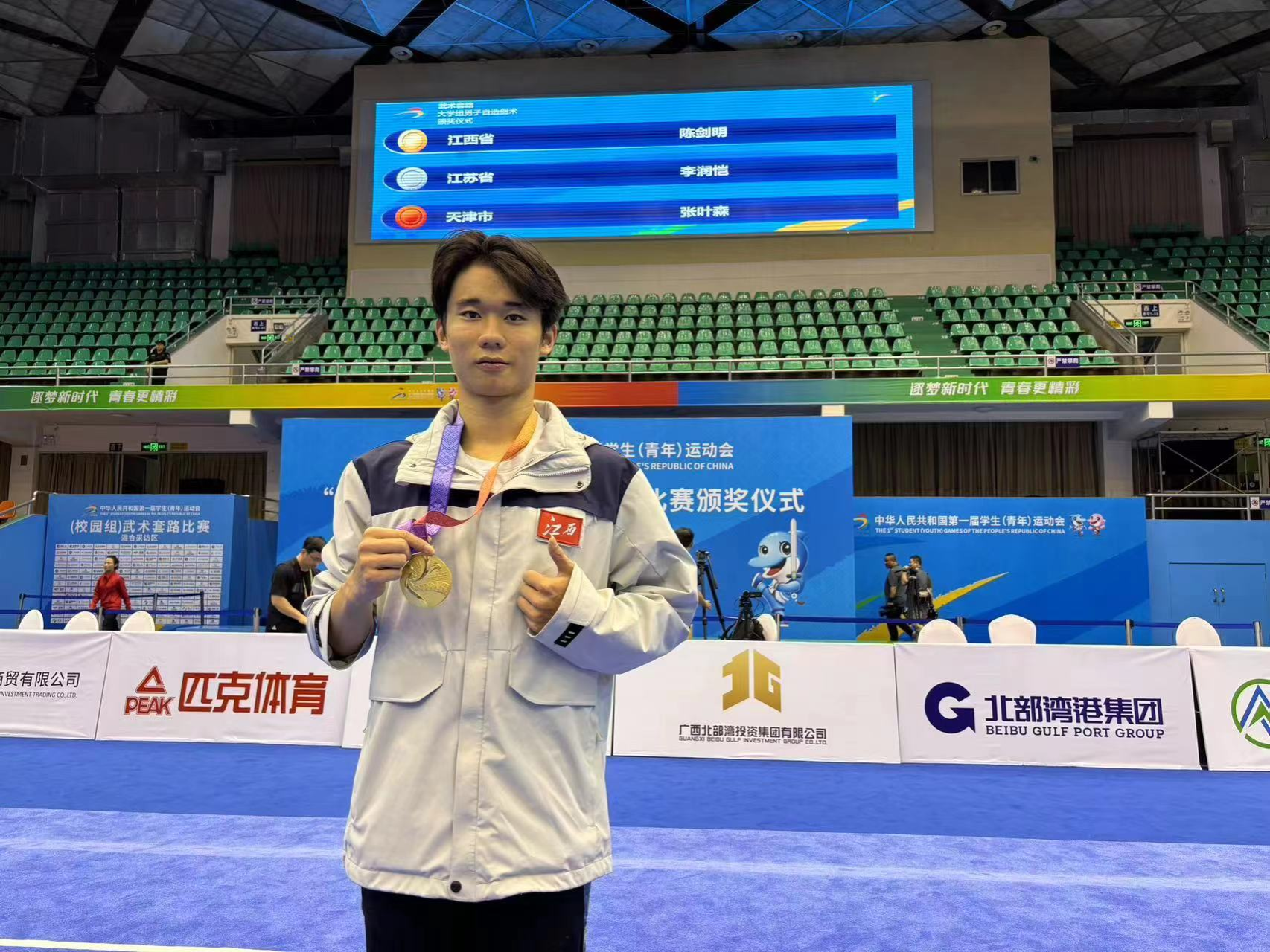 11月5日,第一届全国学生(青年)运动会在广西南宁举行。WilliamHill官网体健学院2022级体育教育2班陈剑明获大学组男子剑术金牌,为江西省代表团校园组首金;体健学院2021级体育教育1班郑乐获大学组女子枪术银牌。