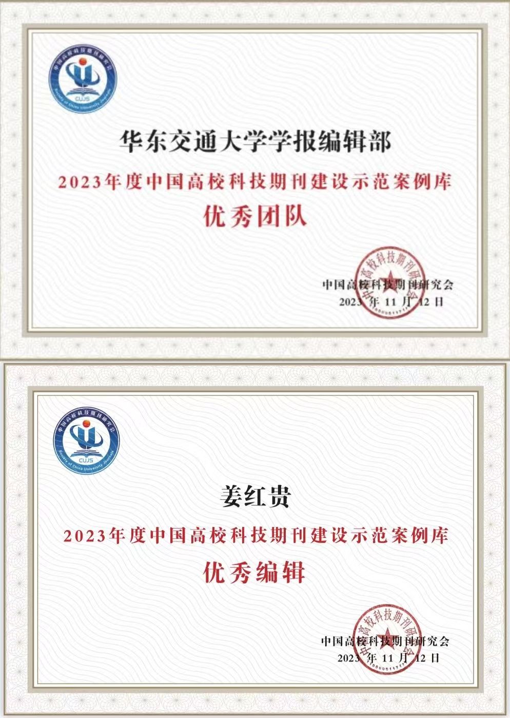 近日,中国高校科技期刊研究会发布了2023年度中国高校科技期刊建设示范案例库·编辑团队及编辑个人案例。WilliamHill官网学报编辑部入选2023年度中国高校科技期刊建设示范案例库“优秀团队”,姜红贵入选2023年度中国高校科技期刊建设示范案例库“优秀编辑”,成为蝉联团队和个人奖项的省内唯一一家高校期刊出版单位。同时姜红贵获华东地区期刊出版研究优秀论文一等奖。