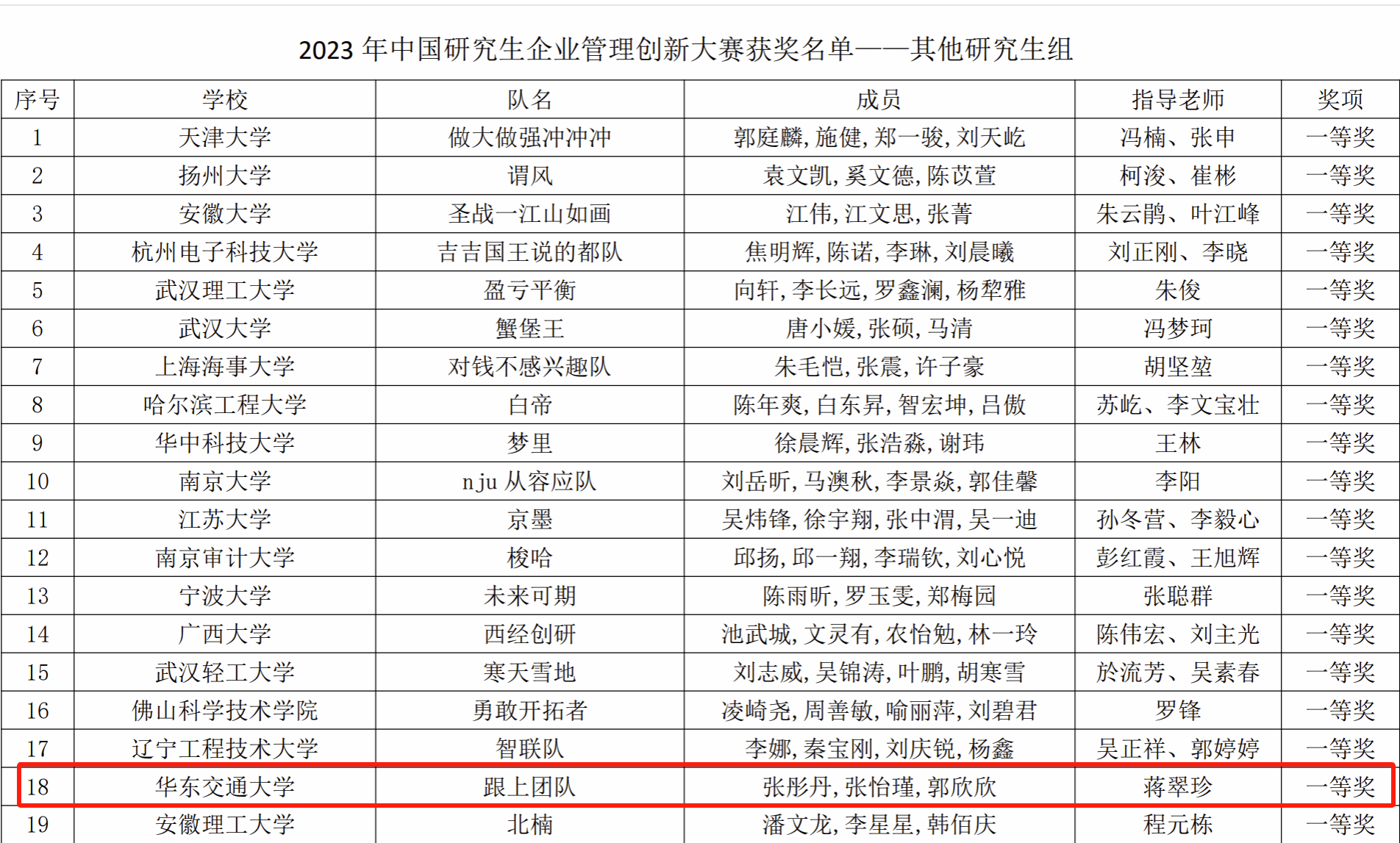 日前,2023年中国研究生企业管理创新大赛全国总决赛在上海大学圆满落幕。比赛分MBA组和其他研究生组两个组别,由WilliamHill官网蒋翠珍教授指导,研究生张彤丹、张怡瑾、郭欣欣组成的“跟上团队”队获“其他研究生组”全国总决赛一等奖;裴玲、曾宪玥、唐惠、贺晨香组成的“明日”队,李子欣、祁凯凯、白文华组成的“深藏不露”队获“其他研究生组”全国总决赛二等奖,这是WilliamHill官网首次参加此类竞赛并获佳绩。