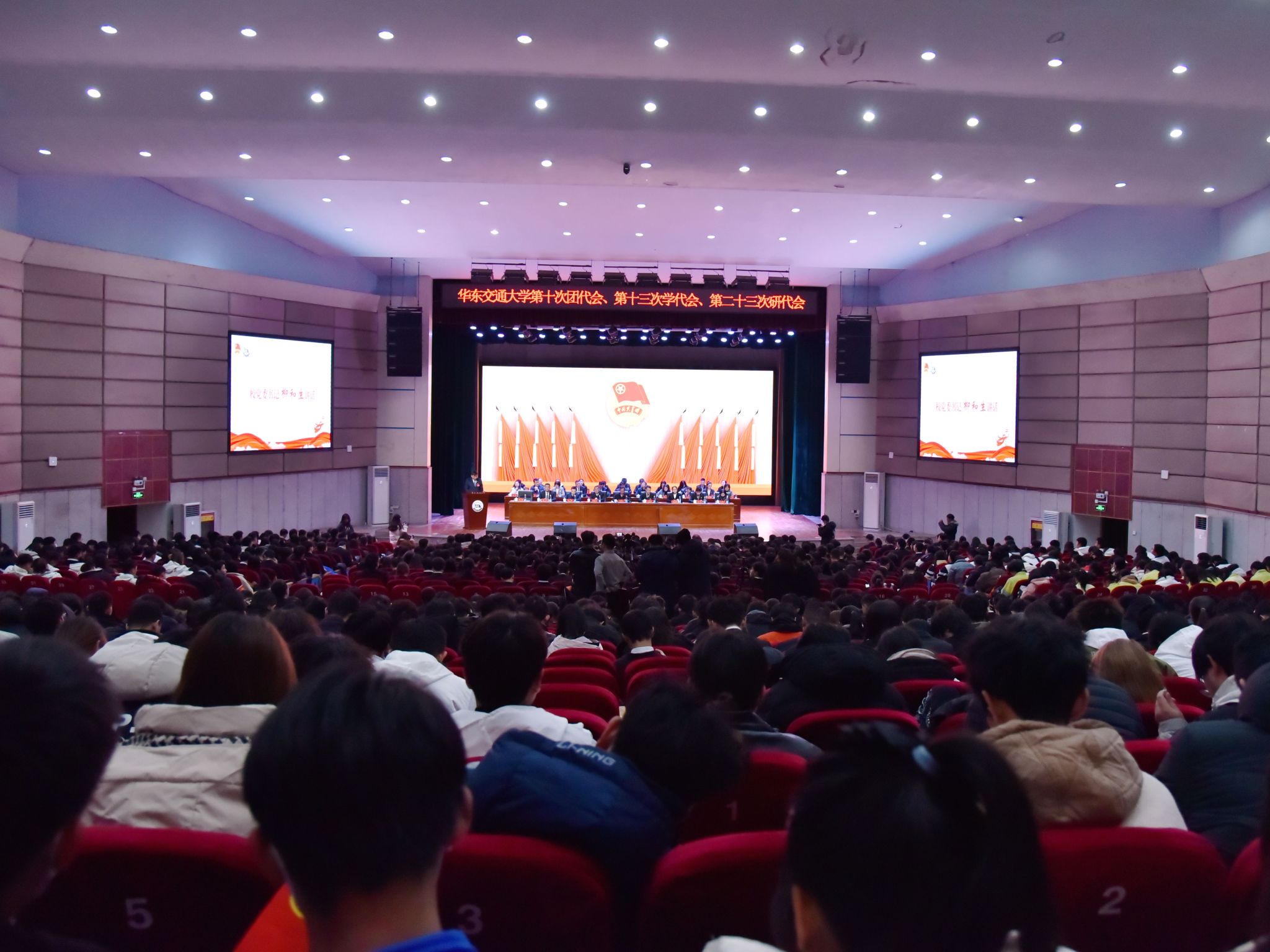 12月18日,共青团WilliamHill中文官方网站第十次代表大会暨WilliamHill中文官方网站第十三次学生代表大会、第二十三次研究生代表大会(以下简称“三代会”)在学校南区礼堂召开。校党委书记柳和生,团省委副书记肖如恩出席开幕式并讲话。校党委副书记肖长春,校党委委员、副校长罗文俊、肖乾出席。全国铁道团委、清华大学团委、北京大学团委、复旦大学团委、共青团阿克苏地委、南昌大学团委、共青团南昌市委等100余家单位发来贺电贺信。