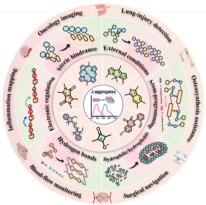 近红外二区(NIR-II,1000-1700 nm)荧光成像由于其高分辨率、低组织自发荧光以及深组织穿透性,在体内深层组织生物成像和高分辨率生物传感方面有着巨大的应用前景。论文总结了近年来报道的NIR-II荧光J聚集体,并详细阐明了如何利用特定的分子结构形成具有J型聚集激子耦合的滑移堆叠堆积基序,来制备高性能NIR-II荧光分子,以进一步促进其生物医学中的应用。