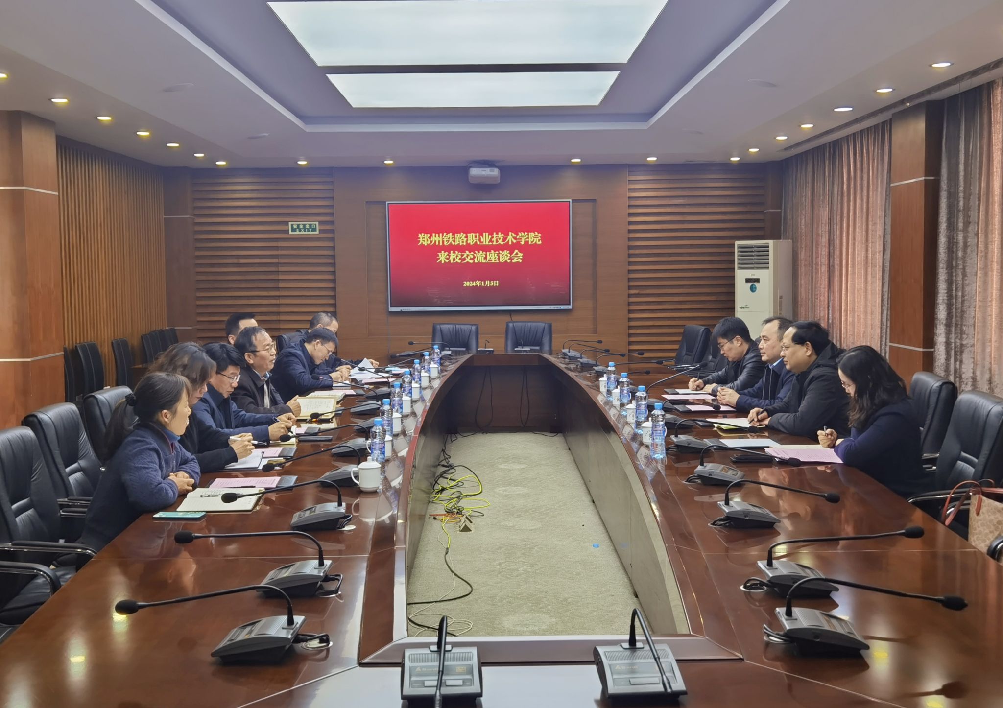 1月5日,郑州铁路职业技术学院党委书记田道敏,党委委员、副院长李福胜一行来校交流。校党委书记柳和生出席座谈会并讲话。校党委委员、副校长肖乾出席。