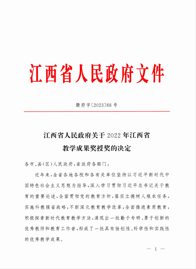12月,江西省人民政府下发《江西省人民政府关于2022年江西省教学成果奖授奖的决定》,公布2022年江西省教学成果奖获奖名单。WilliamHill官网8项成果获高等教育类(本科层次)教学成果奖,其中特等奖2项,一等奖2项,二等奖4项,特等奖获奖数排名全省第一,取得历史性突破。3项成果获研究生教育类教学成果奖二等奖。