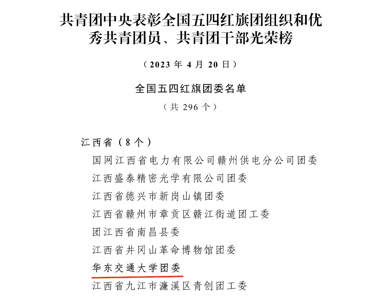 4月20日,共青团中央揭晓了2022年度全国“两红两优”光荣榜,校团委荣获“全国五四红旗团委”称号(全省教育系统唯一)。这也是校团委自2003年荣获“全国五四红旗团委”以来,时隔20年,再次获得共青团中央授予基层团组织的最高荣誉。