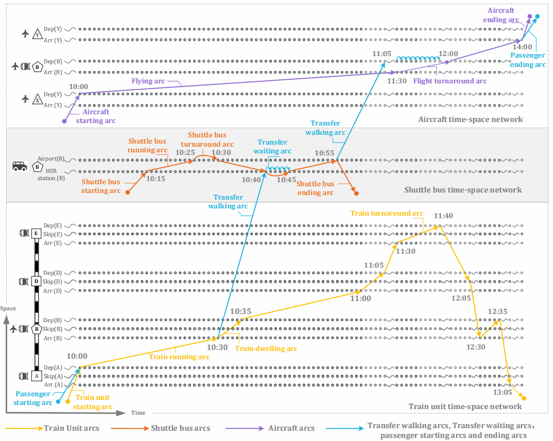 高铁、航空、摆渡车以及客流的时空网络