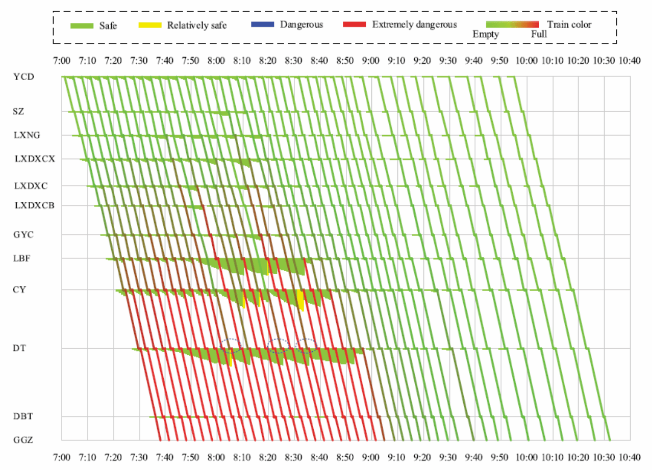 石俊刚博士的论文《Safety-oriented train timetabling and stop planning with time-varying and elastic demand on overcrowded commuter metro lines》发表在交通运输TOP期刊《Transportation Research Part E: Logistics and Transportation Review》(IF: 10.6,vol 175)。为了均衡市郊地铁线路在高峰通勤线路的极端拥堵,该论文从运输安全角度出发,构建了地铁列车停站方案和时刻表协同优化模型及算法,通过设置少量且有效的列车跳停,为拥挤车站分配必要的列车容量,很好地均衡了上下游车站的客流聚集。该研究成果被多个知名学术公众号转载,能够为市郊地铁线路的行车组织和客流拥堵治理提供重要参考。