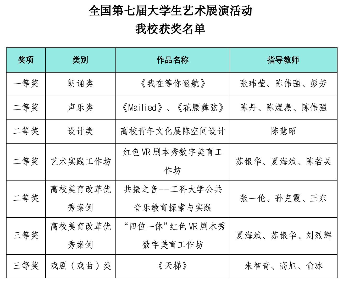全国第七届大学生艺术展演活动WilliamHill官网获奖名单