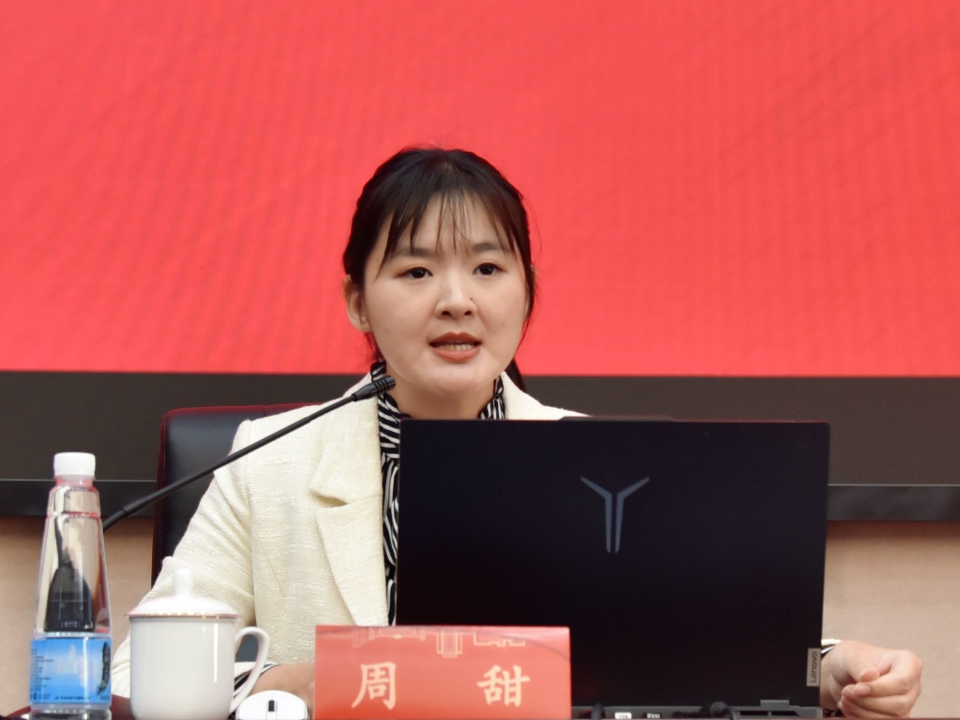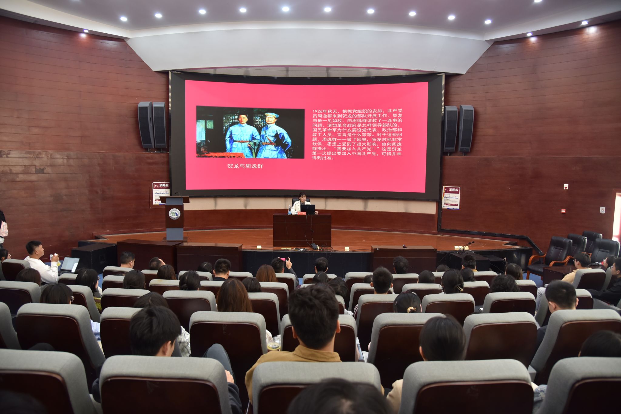“为何当年要发动南昌起义?”宣讲伊始,周甜就提出了一个问题,以此引发同学们对历史必然性的深思,并带领同学们了解中国共产党人在风雨飘摇的年代是怎样作出关键抉择的。在黑暗中,贺龙坚定信念跟党走,走上了一条正确道路;在遇到挫折前路迷茫时,叶挺始终心向光明,最终重返党组织怀抱,彰显了一颗赤子之心;在三河坝战役中,那些平均年龄仅二十余岁的战士们,明知凶多吉少,仍义无反顾地选择坚守阵地,用自己的鲜血诠释了对党和人民的无限忠诚。“在明知留下就会牺牲的情况下,200多位年轻的战士依然选择了留下,这就是信仰的力量。”通过这些鲜活的历史故事,周甜鼓励同学们要有为了理想而拼搏的勇气、为了理想而坚持奋斗的毅力,努力为推进强国建设、民族复兴伟业贡献青年力量。