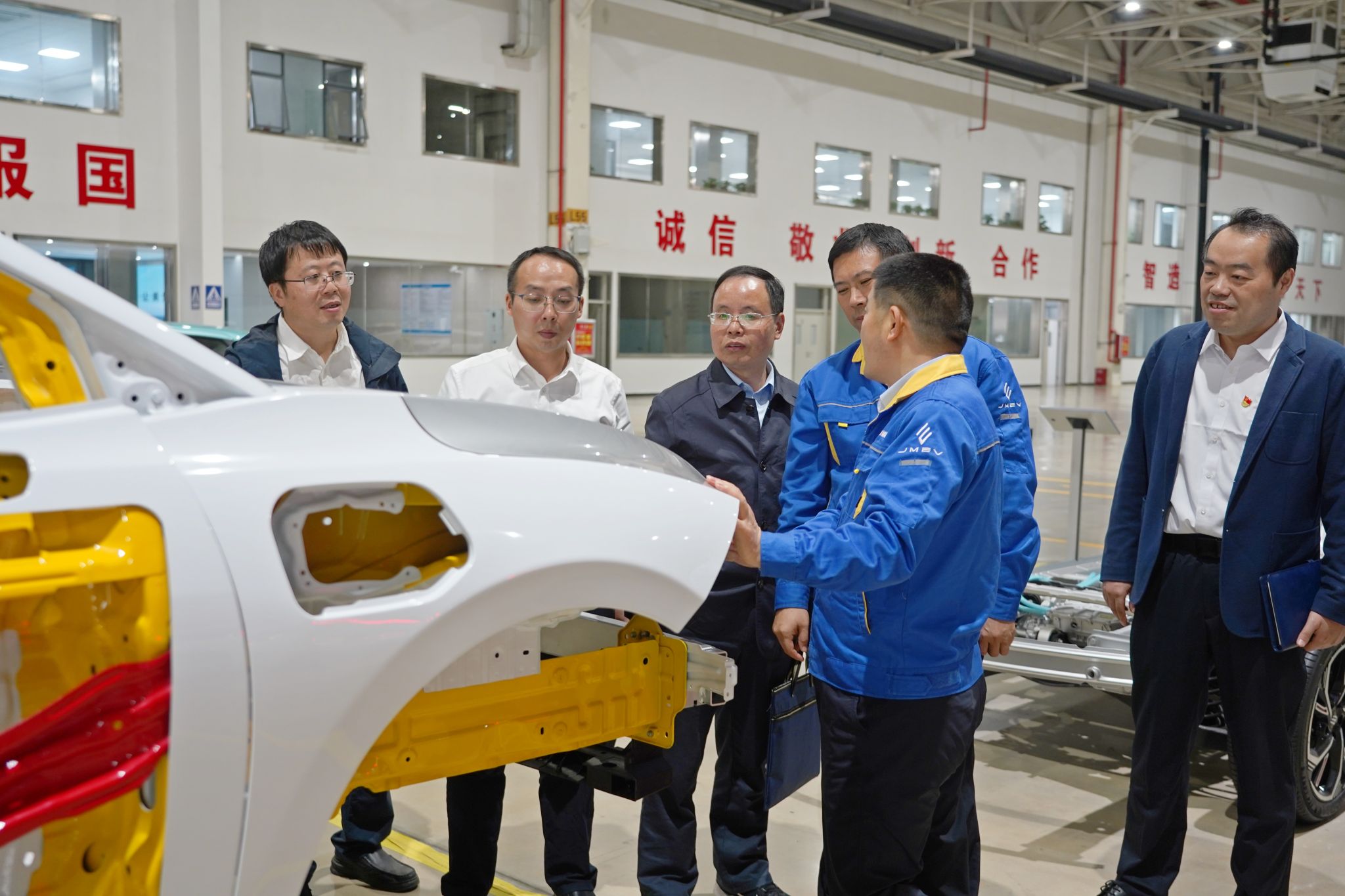 现场学习环节,与会人员深入总装车间,了解江铃新能源公司的发展脉络、业务布局及战略规划,体验新能源汽车生产的前沿技术,直观领略企业的创新实践成果。