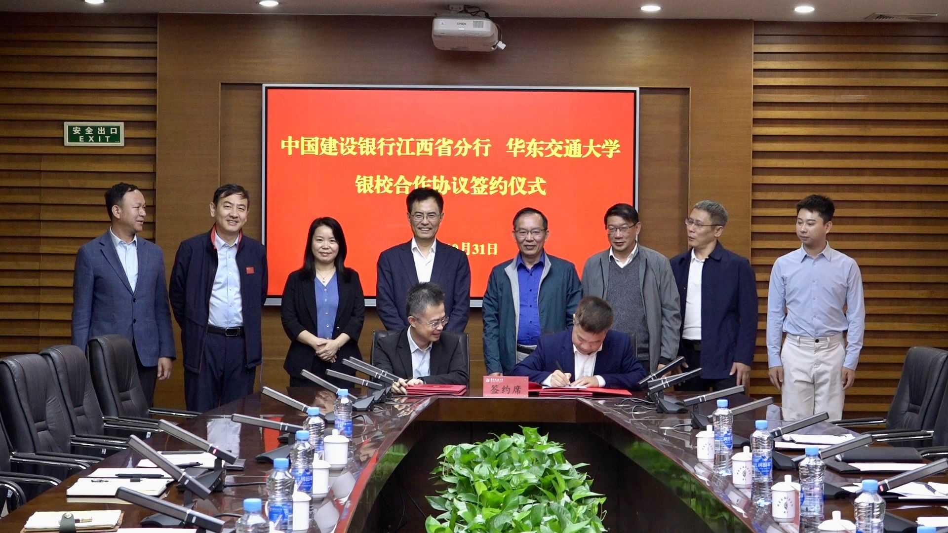中国建设银行江西省分行副行长王珣和杨辉分别代表双方签订银校合作协议